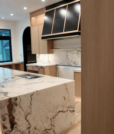These natural stone countertops are prized for their beauty but are prone to water spots, stains, and etching. Applying a surface protection film ensures the long-term preservation of their elegance.