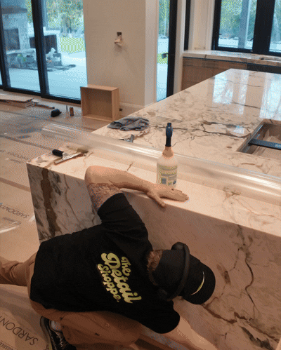 Surface protection film, such as Tuff Skin, provides a durable, nearly invisible barrier that helps shield countertops from etching, staining, abrasion, and everyday wear. By preventing damage before it happens, it helps maintain the original look and finish of your surfaces.